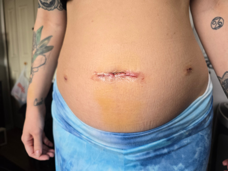 I decided also want to show y'all my incisions. They are UGLY this time around. Compared to the first time, this is gross and it hasn't gotten better yet. Scroll at your own risk.